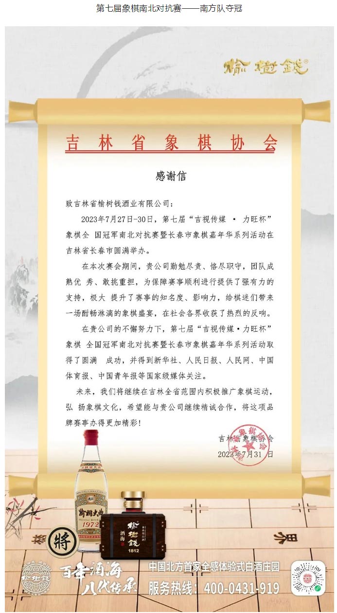 榆樹錢酒業恭賀象棋南北對抗賽圓滿落幕