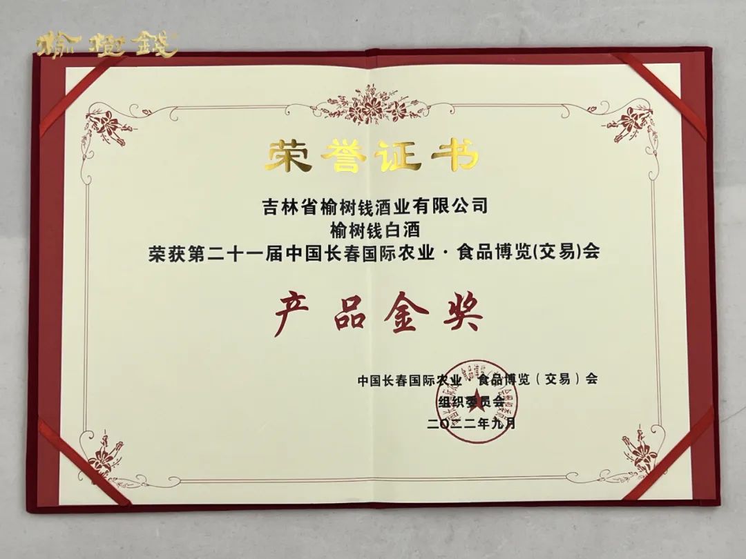 喜報 | 榆樹錢酒業榮獲第二十一屆中國長春國際農業·食品博覽(交易)會產品金獎