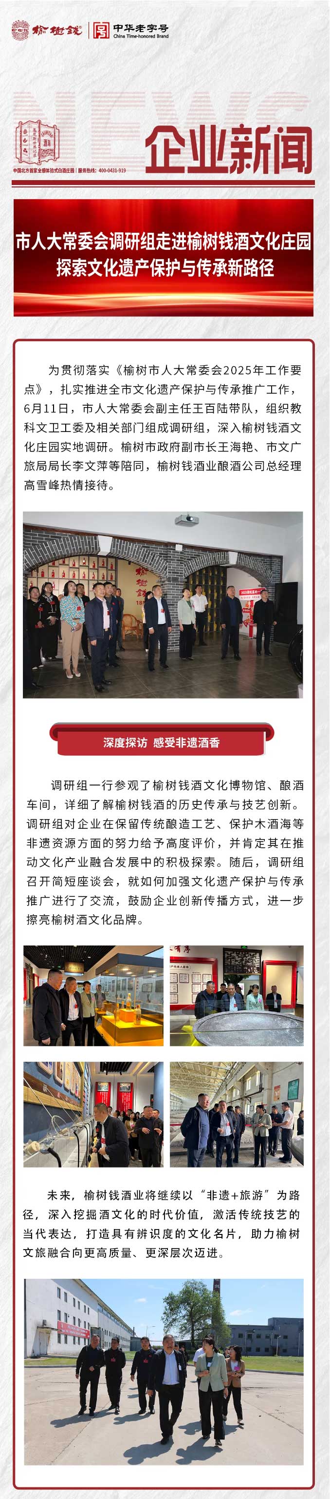 市人大常委會調研組走進榆樹錢酒文化莊園|探索文化遺產保護與傳承新路徑